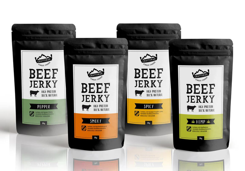 Craftsman Beef Jerky Probierpack Hemp Hanf Pepper Smoky Spicy Craftsman Foods
